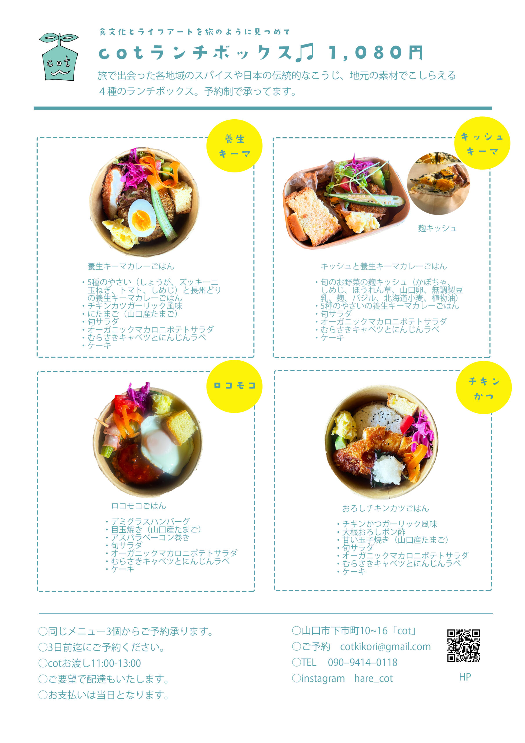 ・cot弁当 ¥1,500〜(税込¥1,620)